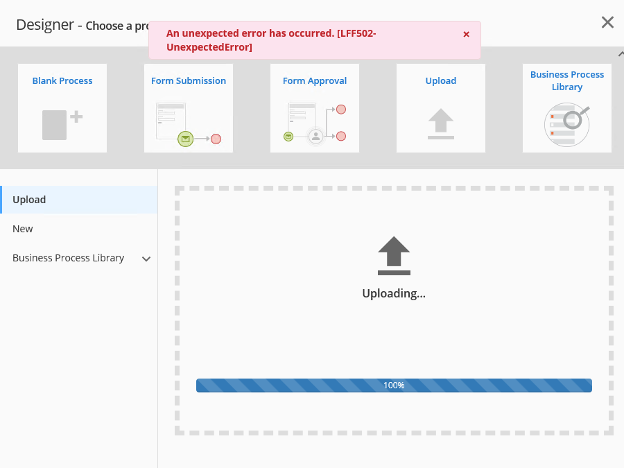 An unexpected error has occurred. [LFF502-UnexpectedError]