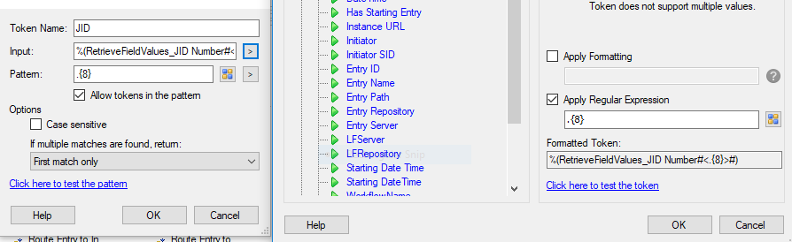 Looking within the folder the documents with be routed to. With Pattern Matching ID number with regular expression .{8}