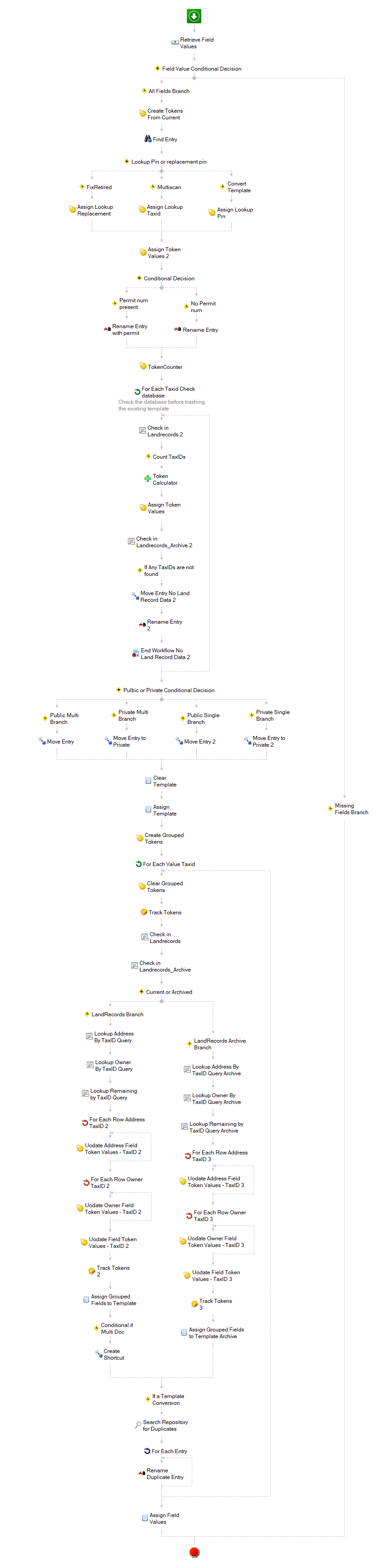 I am working with tax parcel data. Documents get scanned and can be applicable to multiple parcels. So I created a template with a field group for all the parcel metadata. Not all of the fields in the group will have data for each parcel. Some are null, which is likely causing my problem. In my workflow when I assign field values sometimes one field will go into a different group than I am assigning at the time.