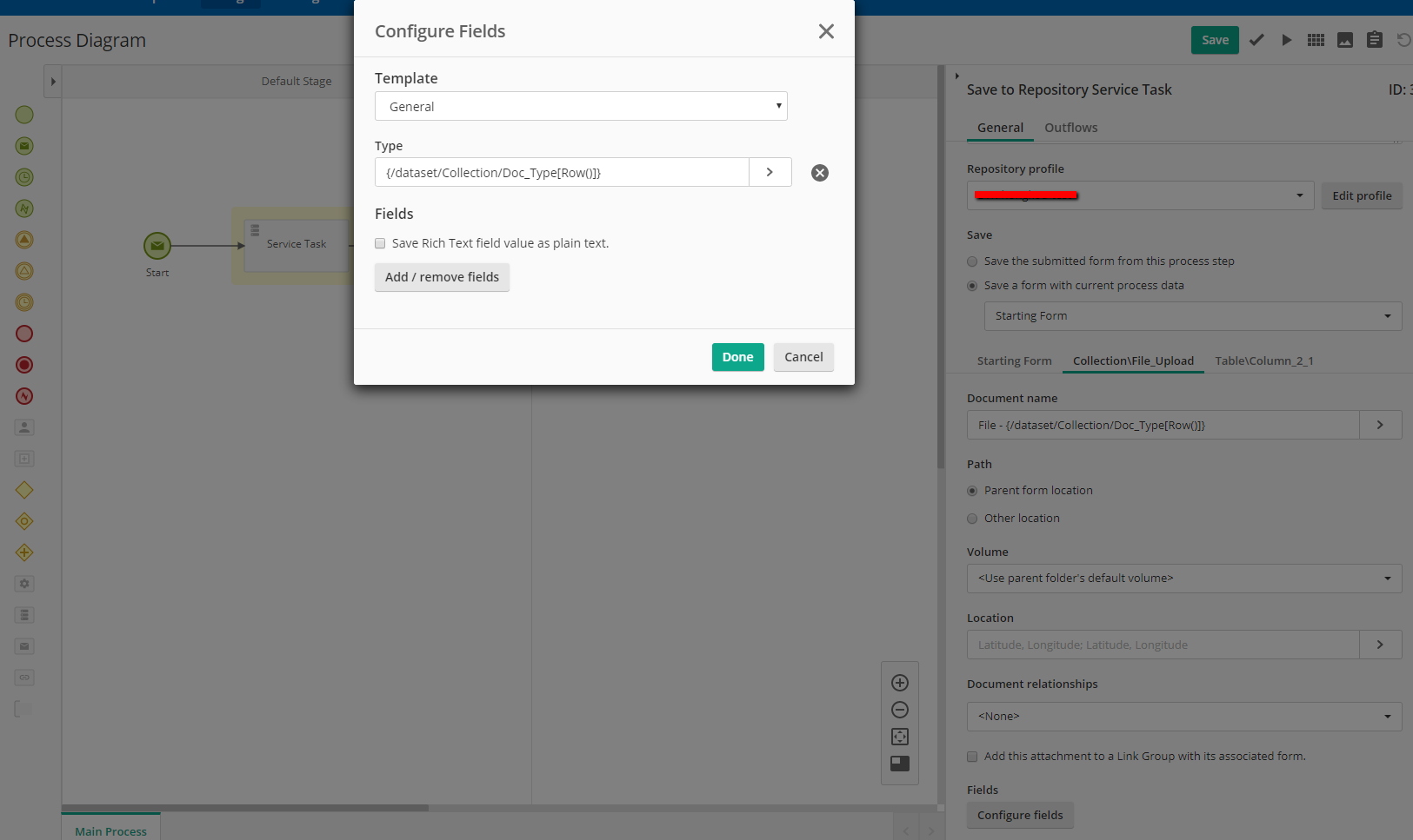 {/dataset/Collection/Type[Row()]} in a Save to Laserfiche Service Task.
