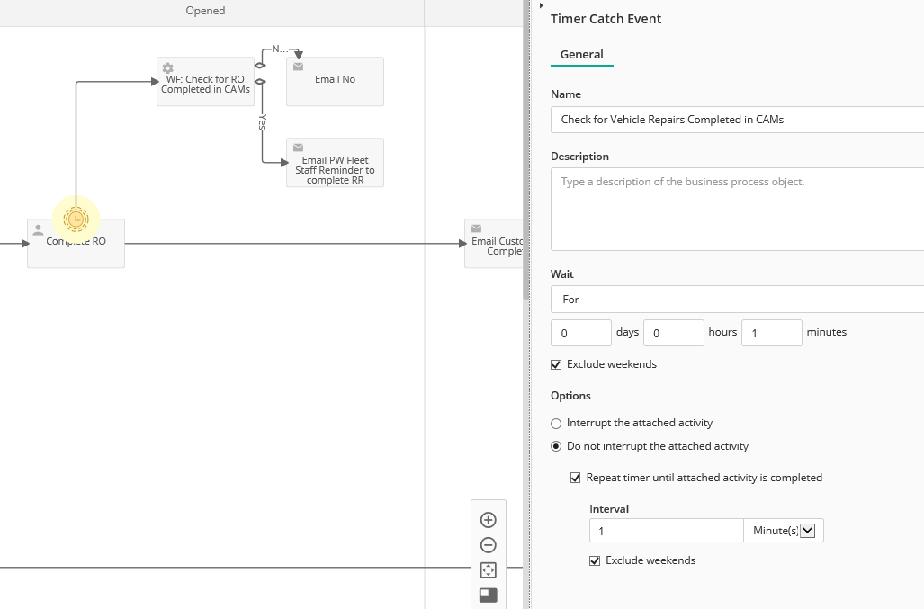 I tried setting up the "Do not interrupt the attached Activity" with a repeat setting, but the User Task terminates after my Timer Event tasks are complete.  Any ideas?