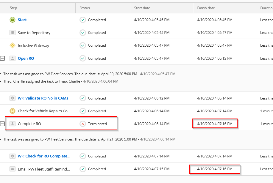 Hello, I have an issue that is best ask if simplified.  Let's say I want to setup a reminder if a task isn't being completed after a certain period of time.  It works if I interrupt the User Task, Send an email reminder, and transition back to the User Task.  However, it creates a lot of junk history and I don't like how it actually interrupts the User Task.