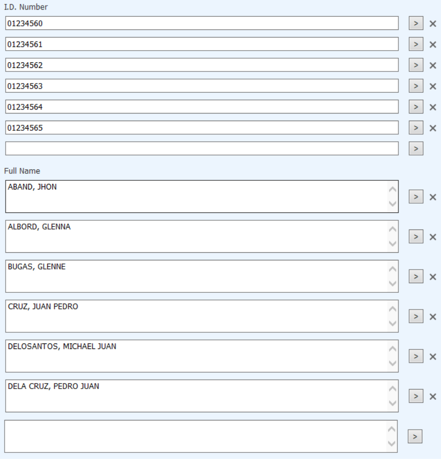 2. Retrieved Multi-Value Field and Single Field - The Multi-Value Fields are ID Number, Full Name, Rating 1 to Rating 6. The Subject 1 to Subject 6 is a single field.
