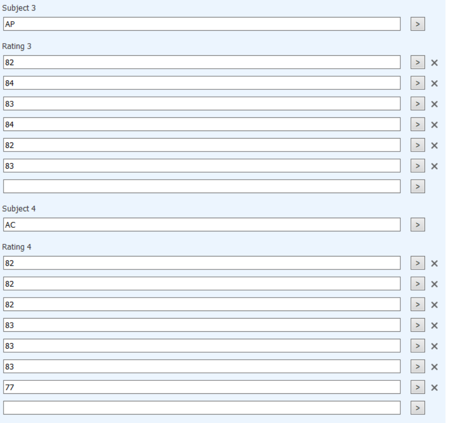 ID Number Full Name Subject Rating