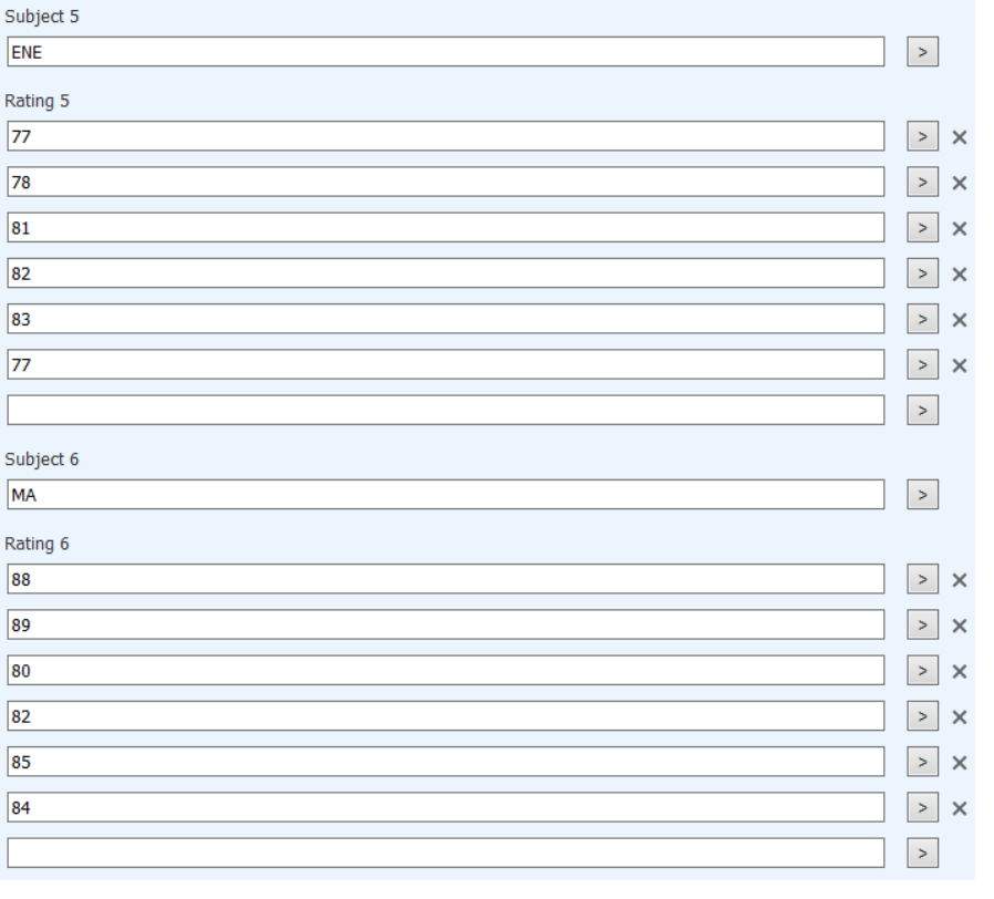 1. Field Names are ID Number, Full Name, Subject 1 to Subject 6, Rating 1 to Rating 6.
