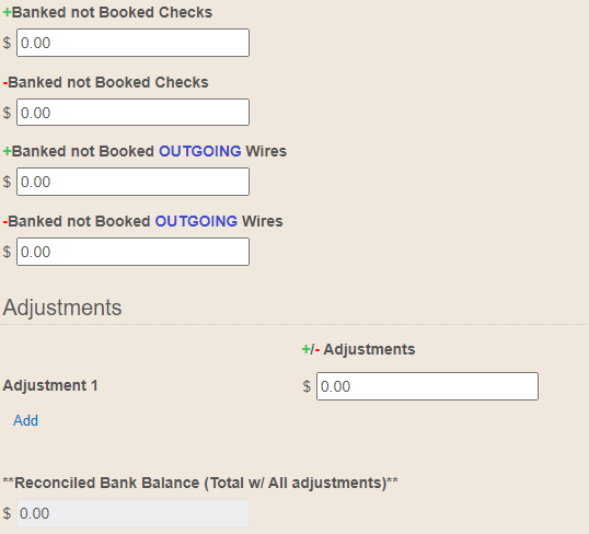 =SUM(V__Banked_not_Booked_Checks, V__Banked_not_Booked_Checks_1, V__Banked_not_Booked_Outgoing_Wires, V__Banked_not_Booked_Outgoing_Wires_1)) - SUM(Adjustments.V_____Adjustments_1)
