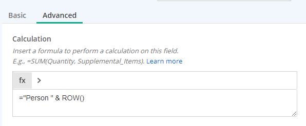 You can add a field to the collection that is set to be readonly and use the following formula: you can remove the "Person " & part, and simply name the field itself "Person" if you like.