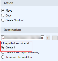 I have another workflow process that moves a document into a folder and if that folder does not exist it should create it (see image below)