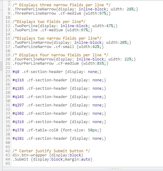 The 3rd and 4th image display the current CSS coding for the two forms.