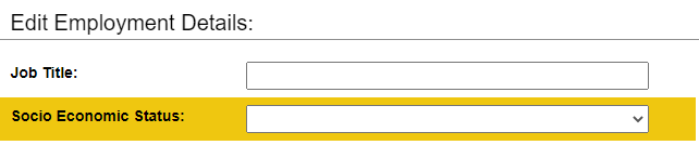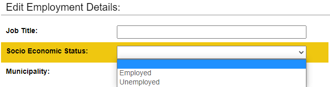 Drop down for "Socio Economic Status" has to lists choices of employed & unemployed.