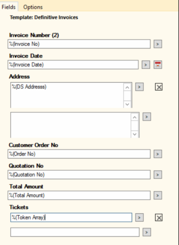 Some of the invoices have ticket number which we need to tale note using the %(Token Array).