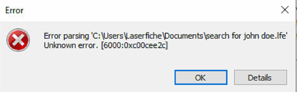 My plan was to get this .lfe file created, throw it in Laserfiche somewhere, and attach it to this daily email. However, I must have something wrong here as I get the following error every time I try to open this file