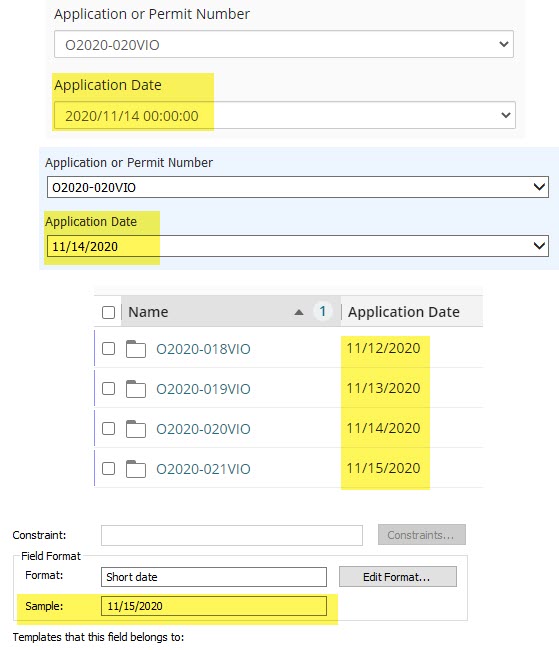 In the admin console (last snippet) I have the field set for short date. Opening an entry in the desktop client shows the field as expected with mm/dd/yyyy. If I show the field in the column display on the web client, it displays as expected mm/dd/yyyy. However, when I view the template field in Web Client it is not only showing a time, but it also shows a different format of yyyy/mm/dd.