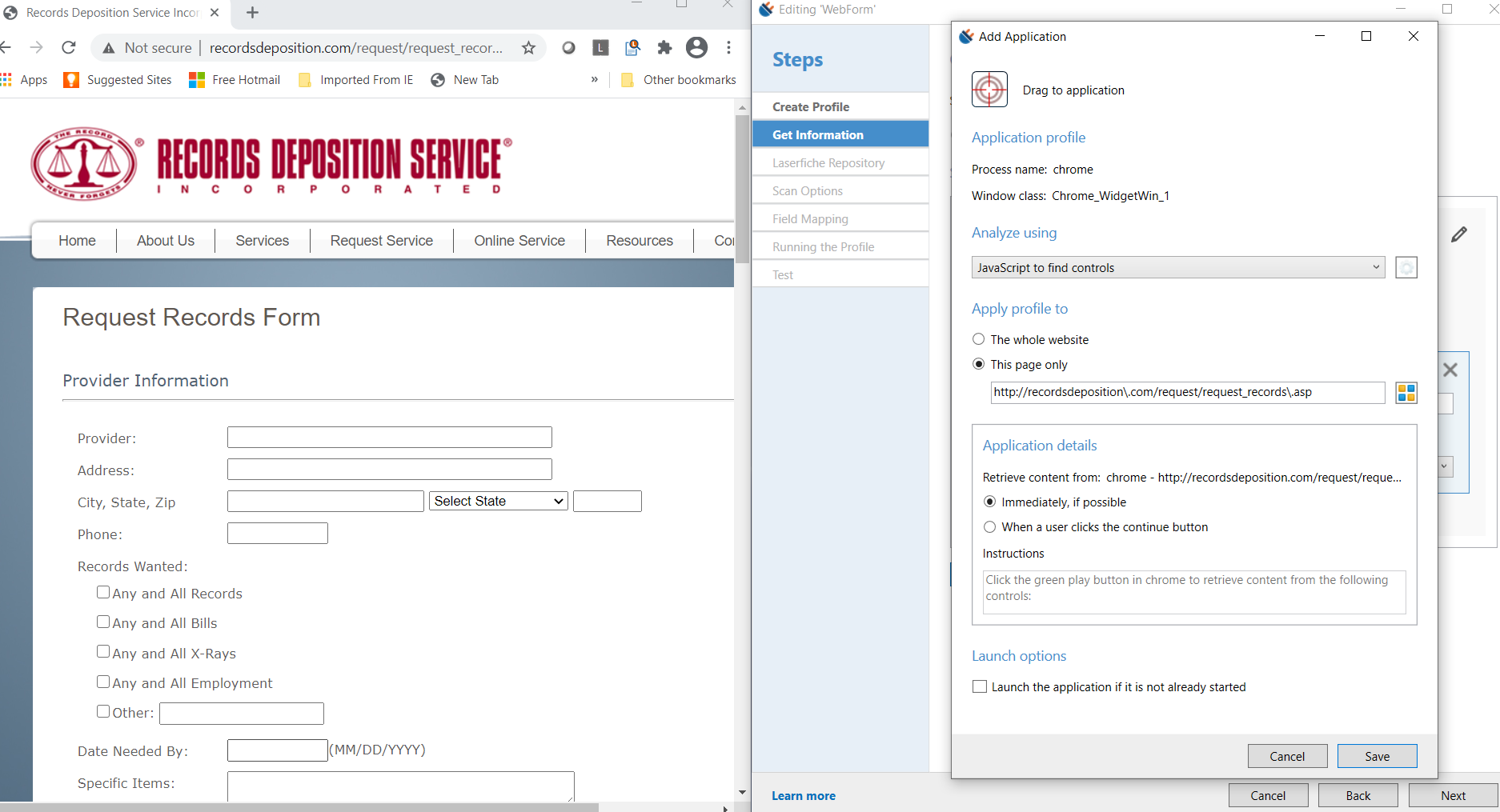 I have configured a profile to work with a submit form in IE and everything works as expected.  I have tried adding Chrome with issues.  I have run the Chrome Configuration Utility and am able to to get the URL using UI will not work with Java.  When I try to create a token it will not focus on the target area.  It grabs all text for the entire page.