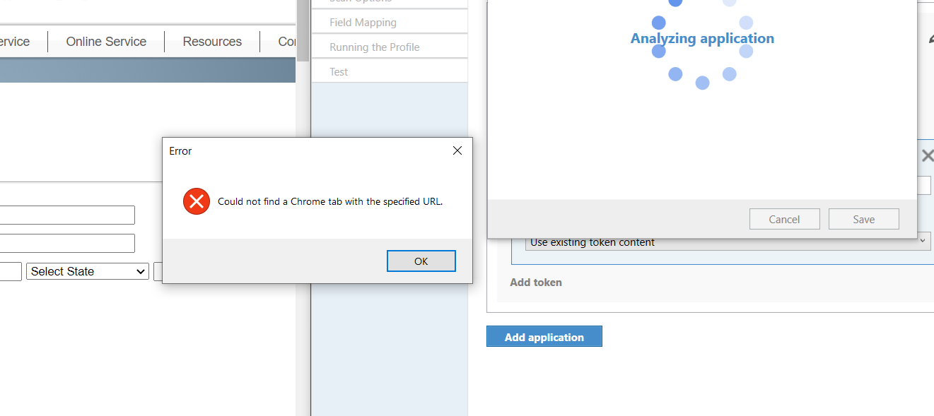 I have run the utility per your instructions when analyzing application I still get error "Could not find Chrome tab with specific URL. See attached screen shots