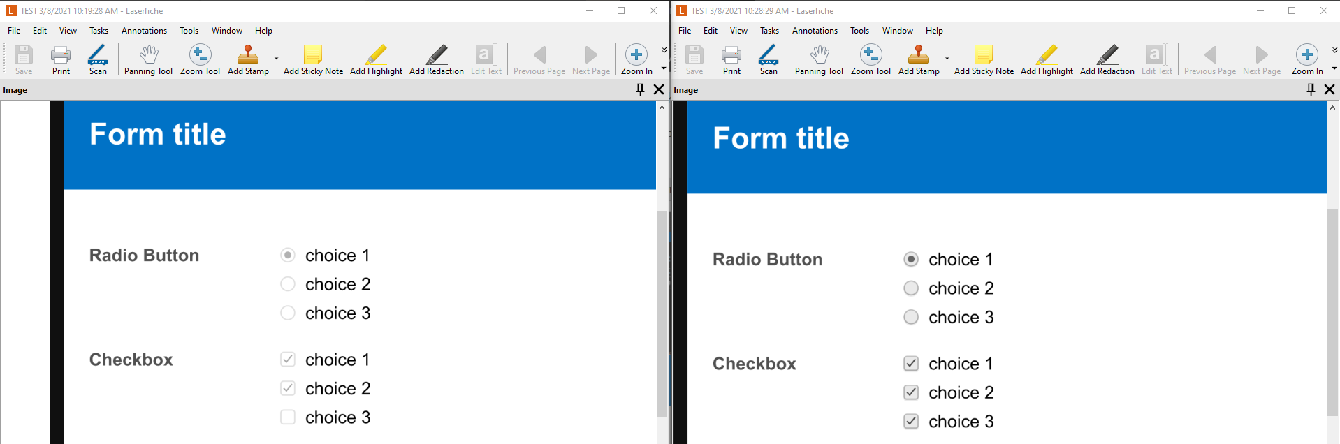 I recently received complaints from some of our users about the readability of checkboxes and radio buttons on saved copies of Forms, especially when they need to print physical copies.