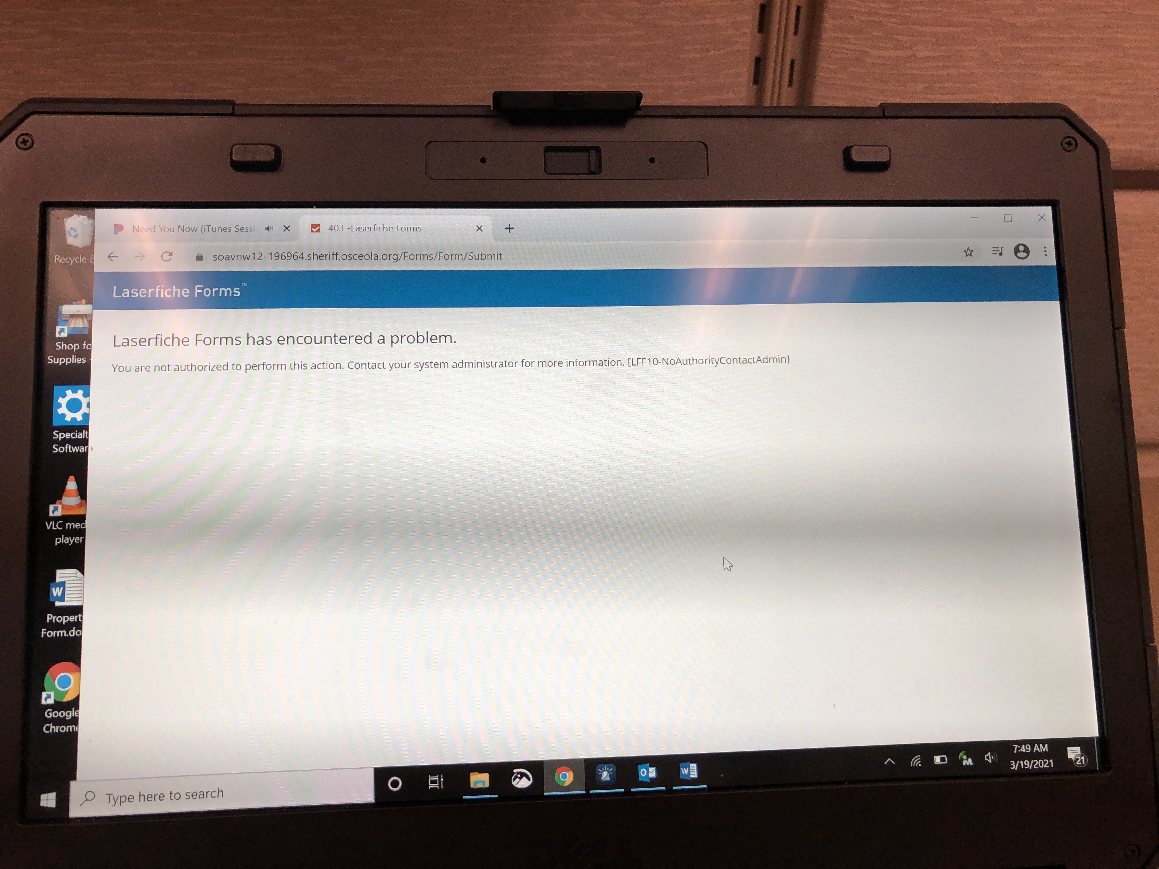 You are not authorized to perform this action. Contact your system administrator for more information. [LFF10-NoAuthorityContactAdmin]