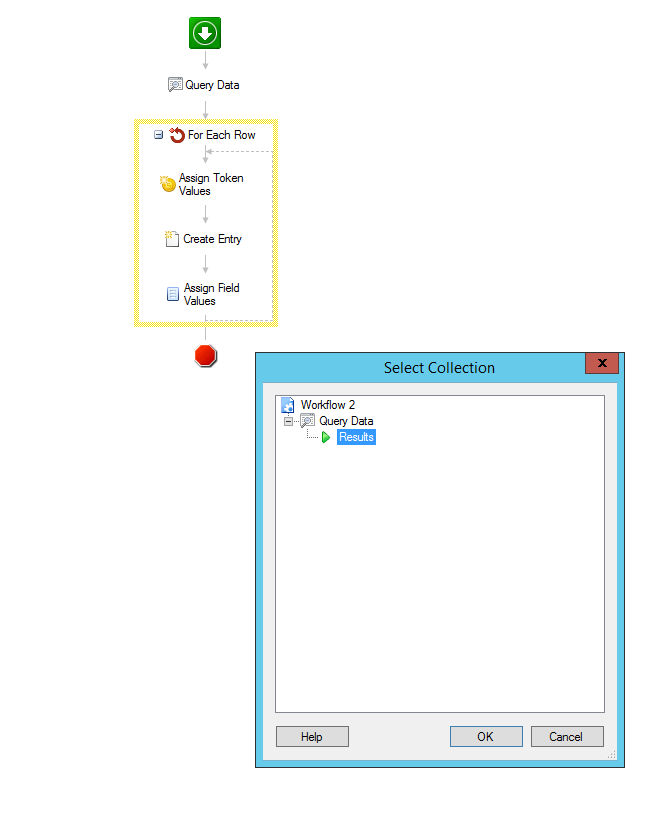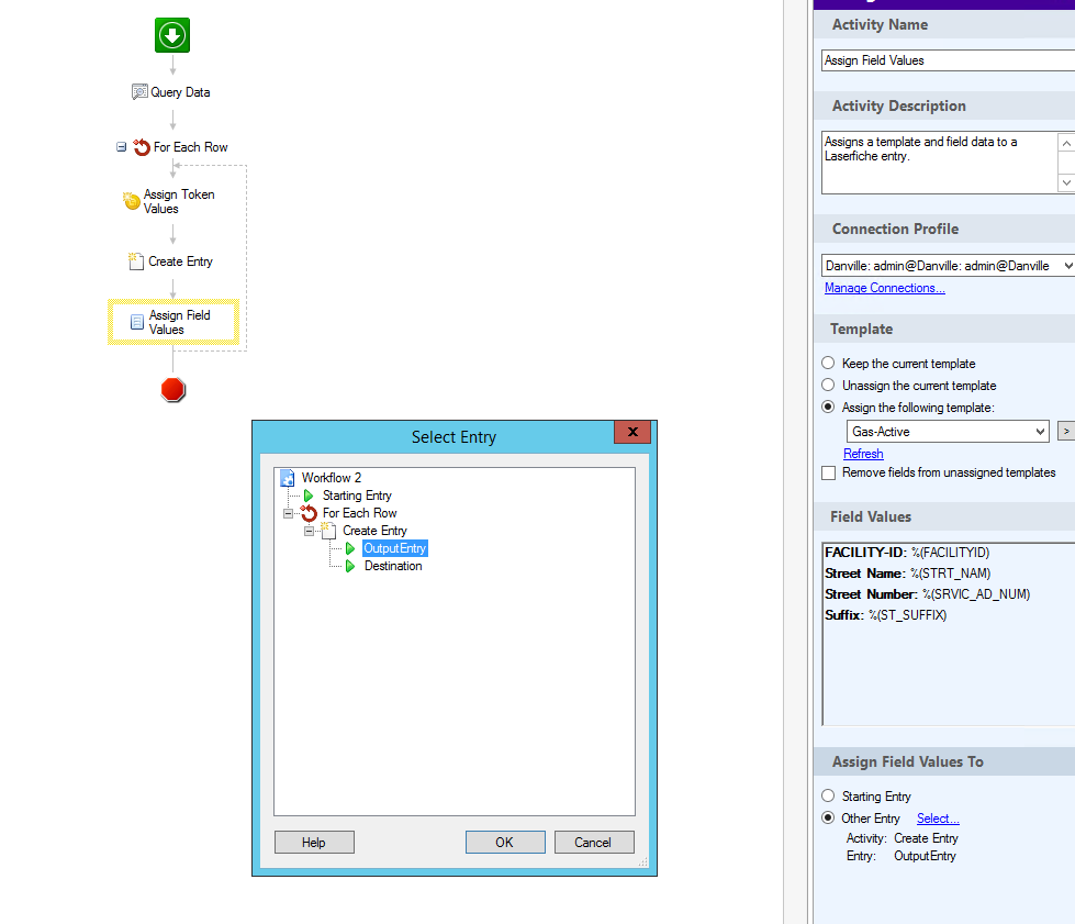 I am trying to create a workflow that will query data and then create a document in a specified folder, apply a template and populate certain fields.
