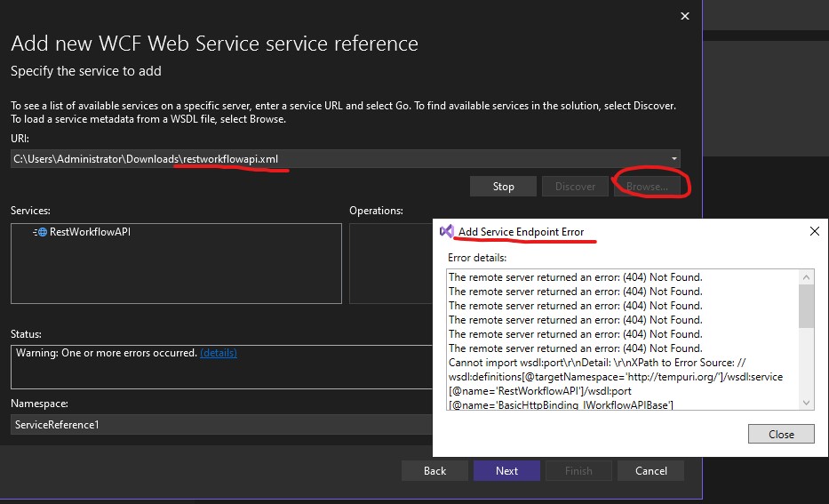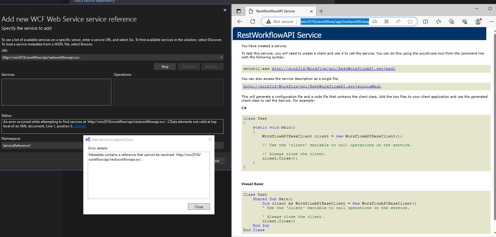 Metadata contains a reference that cannot be resolved: 'http://desktop-a5ti2dh/Workflow/api/RestWorkflowAPI.svc'.