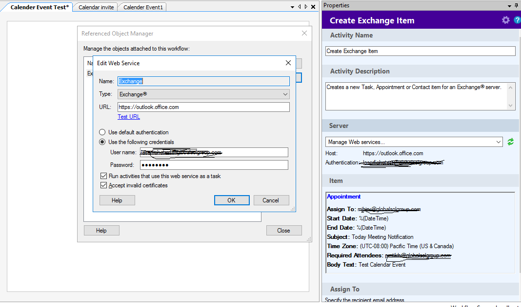 We are creating calendar appointment using workflow "create exchange item" activity within workflow.