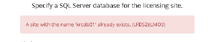 There is an option to create a licensing site, but I don't want to do this, because your licensing site name must remain the same, and it already exists.