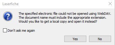 Customer reached out with a WebDav error when trying to open an electronic document from within the LF Desktop Client.