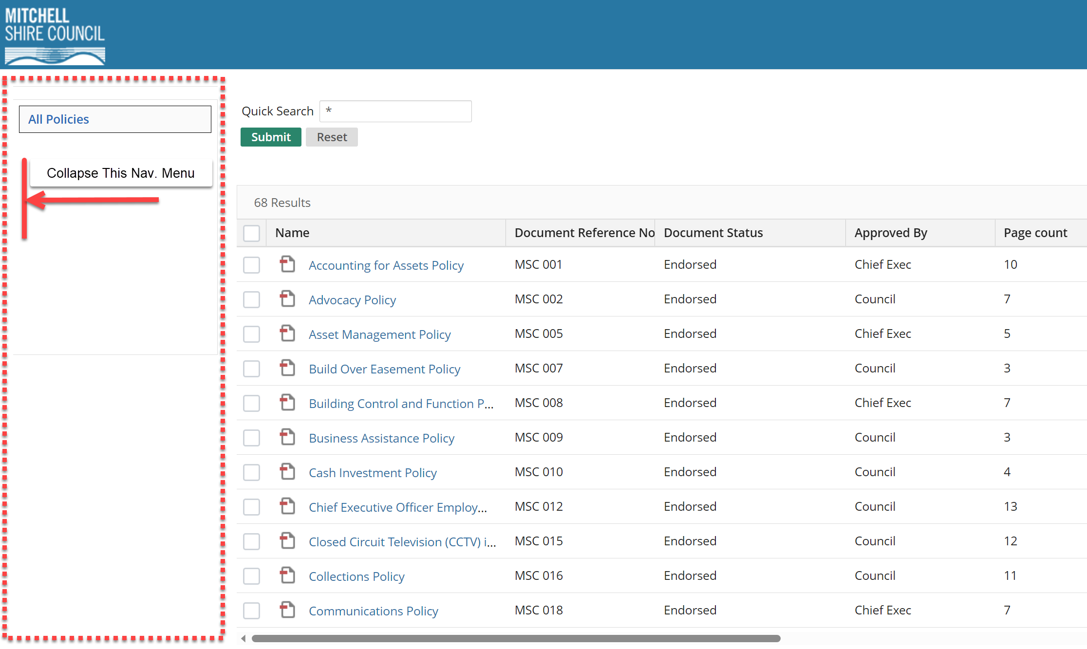 A further request came through today, this client would like us to reduce the white window to the left of the grid to give more prominence to the content. In thier application, they're embedding the page in an iFrame on their intranet and only want the grid and not he nav.