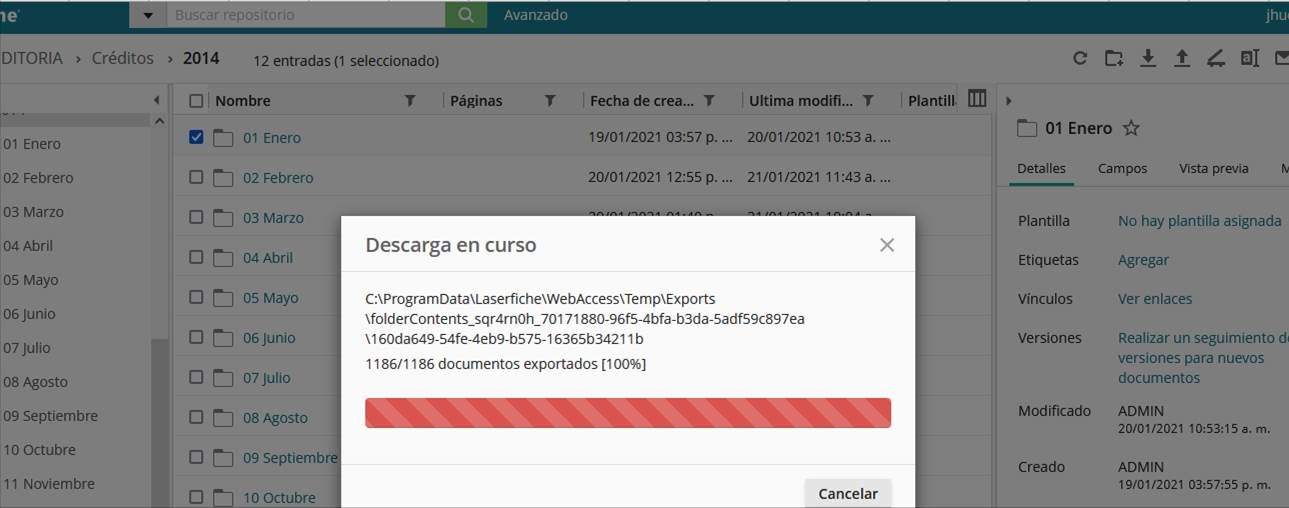 We have a client who wants to download more than 1000 documents from the web client, apparently he downloads the documents but when he reaches 100% he sends the screen that is attached and does not let them download, if the download is done in parts it does it well but the customer does not want this.