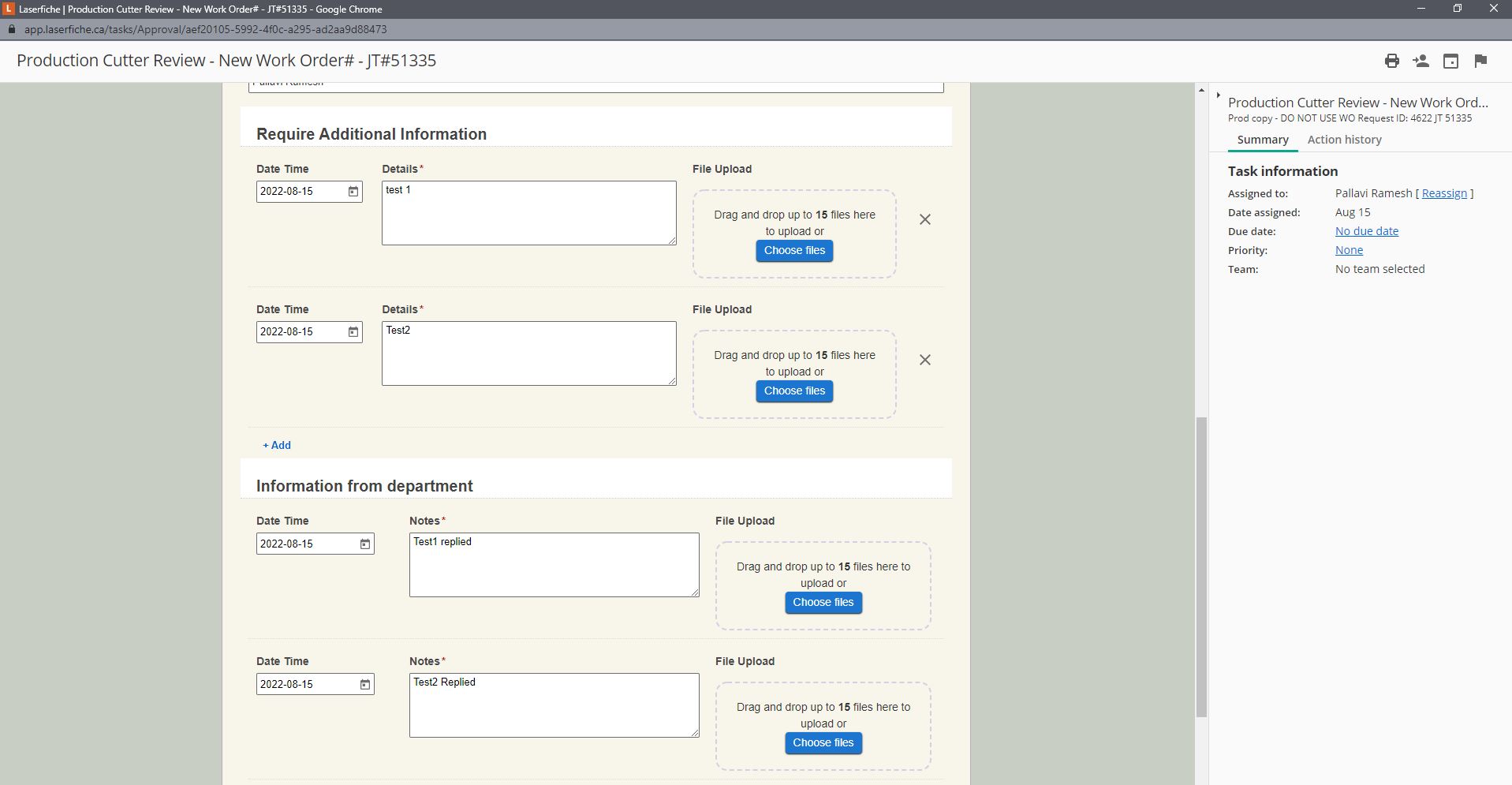 After this first iteration, if the supervisor has additional queries and assigns task again to initiator , here the supervisor has to manaully remove the 1st attachment in the file upload field and upload a new attachment. This is the same case for Initiator as well, when they are replying for the second time, they have to remove the previous attachment and upload the new one because we dont want the files getting saved another time.
