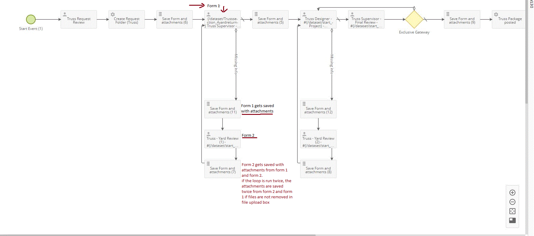 In our process, we have a loop ie Supervisor assigns task back to the initiator (with or without attachments) for further queries. At this stage the form and attachments are saved in the repository.