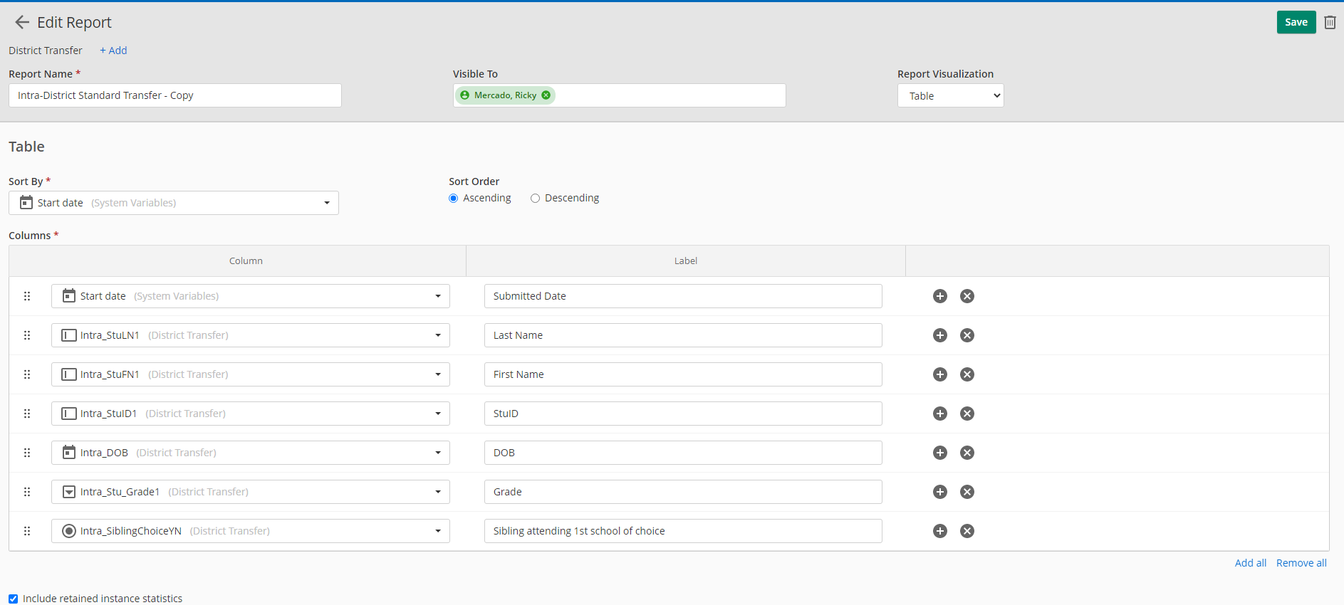 Thank you, Rui, that worked if I wanted to download or email the report.  I also tried to uncheck the "Include retained instance statistics" while editing the report and that also worked if I wanted to create a scheduled report.
