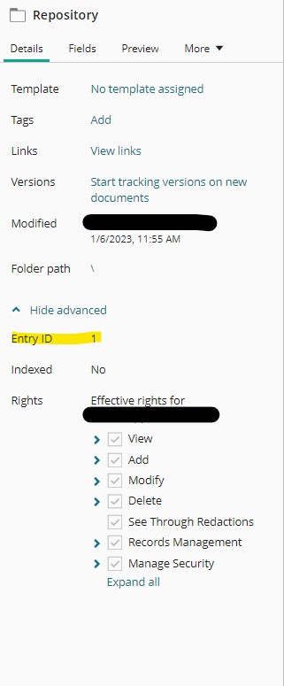 I have been asked if it is possible to Always show the Entry ID by default in the Laserfiche Web Client without having to always click "Show Advanced" as they use this number as their primary index key.