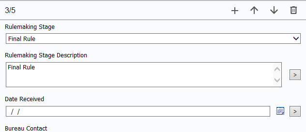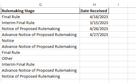 ex. As per screenshot we have 2 different fields "Rulemaking Stage" and "Date received" inside the "Rulemaking Stage" group with below data entered.