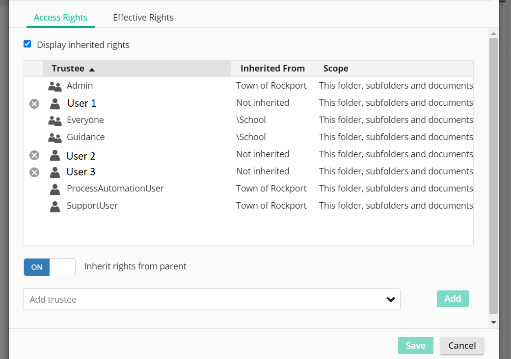 As you can see in one of my above screenshots, I have granted the users access to both the folder the documents are being saved to and the folder above it, which is a child of our organization root folder. Will I need to grant these users access to the root folder? And will doing so so allow them to view the other child folders of the root folder?