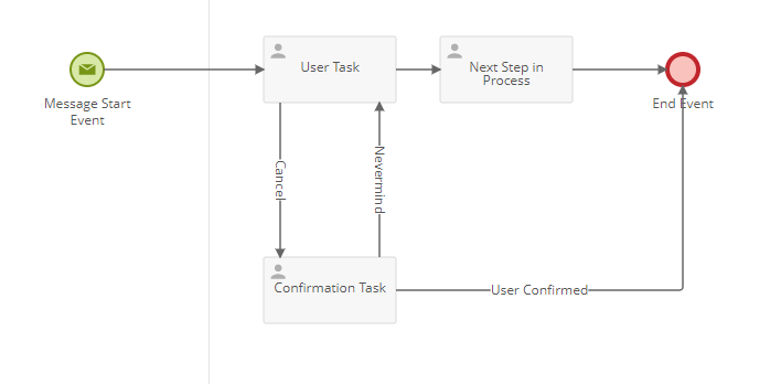 So the logic in the process diagram here would be an extra user task with a form that just asks for confirmation, and if they choose "no" at that point to indicate they mistakenly hit the cancel button, it would just send them back to the original user task. Is that correct?