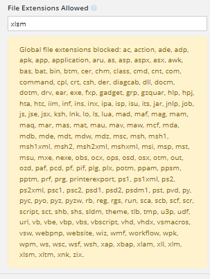 Is there a way to bypass the global file extensions in forms? This is going to be only for internal users so security is less of a concern in this case.