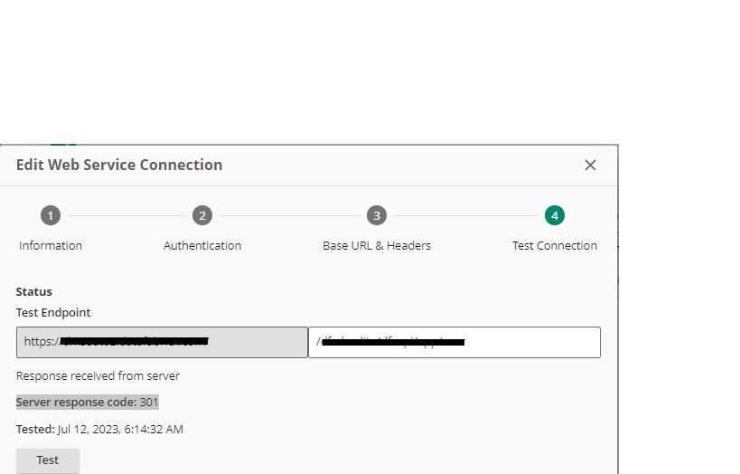 I need an other clarification in configuring the Web Services we are getting 301 error while testing for any URLs it matters. I have also attached the screenshot for your reference. Please guide me how to resolve it and the configuration guide.
