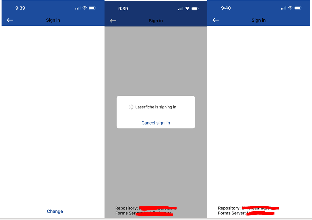 We have a LF Mobile user that is having an issue with the application freezing, or stalling, after being idle or logging out of the repository (version 11). They are having to close the application and retry logging in when this happens. Has anyone else noticed this behavior? Attached are three screenshots showing the behavior. TIA.