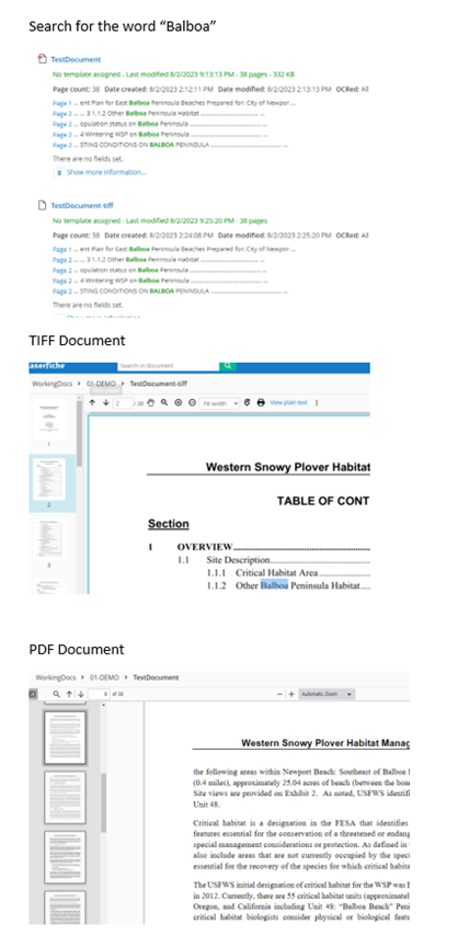 I was wondering if the search behavior is different on a TIFF vs PDF or is there something I need to setup to get the same behavior.
