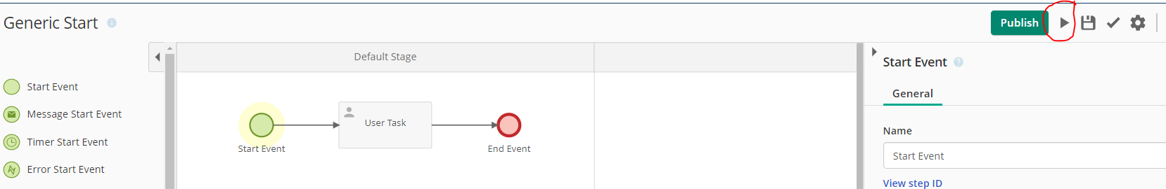 I read in documenation that (( Generic Start Event , This generic start event lets a user start the process manually ))