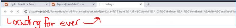 We are having issue with our Laserfiche Forms Reports not downloading.