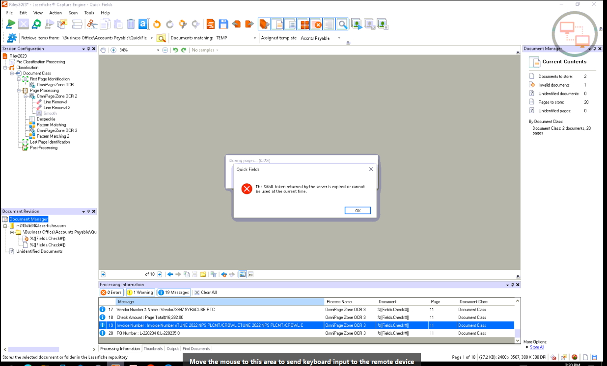 I have a user that is receiving issues when we try to save or store files in QuickFields to the repository, "The SAML token returned by the server is expired or cannot be used at the current time.". They have verified it is valid until 2026, is there anything the user must do on their side to ensure the SAML token works properly? Error in screenshot.