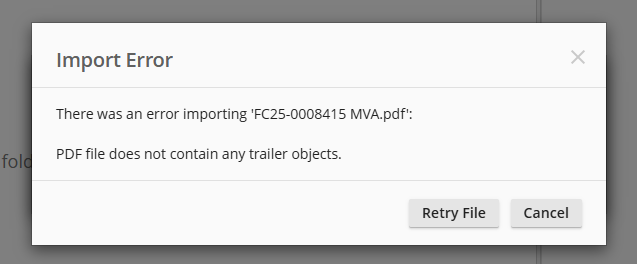 A "trailer" is a particular part of a pdf document that is important to be able to find to read it correctly. In general, Laserfiche doesn't inspect the documents you attempt to import - since we allow all types of files, it's not really possible in general. But for certain types of files, we support operations like page extraction. If you have an option like that checked during the import, we need to be able to successfully read the document.