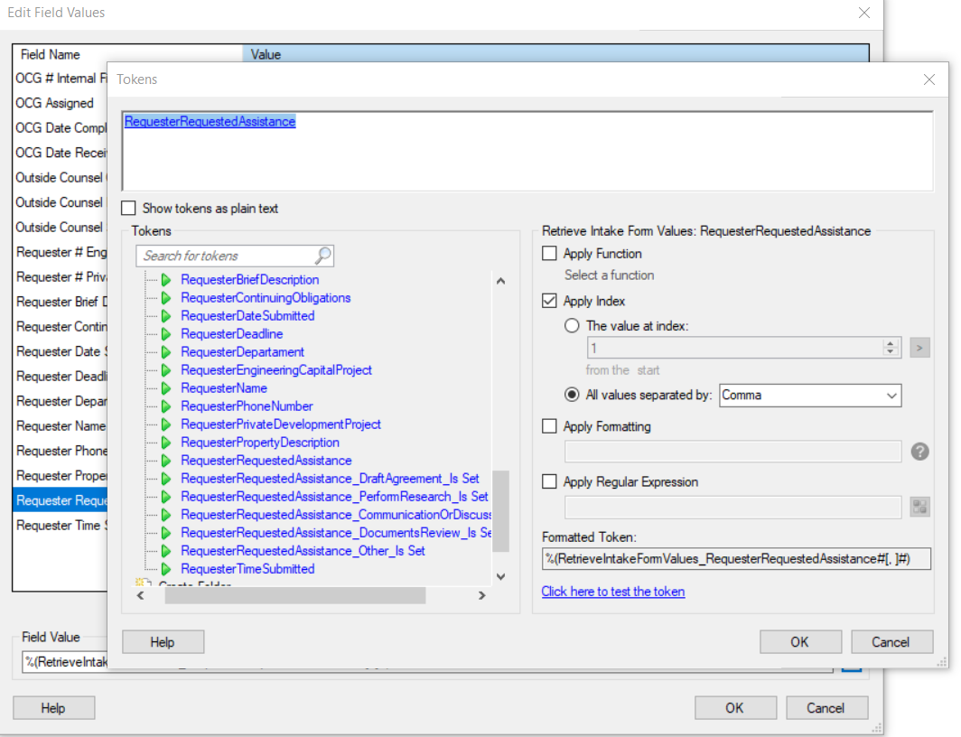 In the Workflow Design, I am unable to utilize the <List of all checked> option, and when I try selecting 'RequesterRequestedAssistance' to capture the selected values from the form (like I made in the first option), it returns a blank value (refer to second image). I am uncertain about the cause of this issue. Could you please provide insights into what might be happening, and advise on the appropriate course of action?