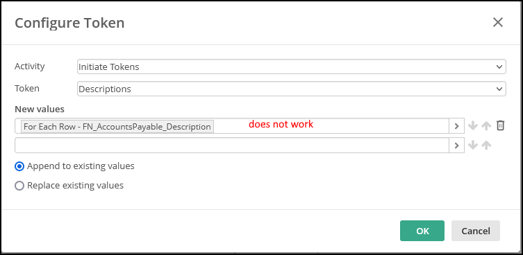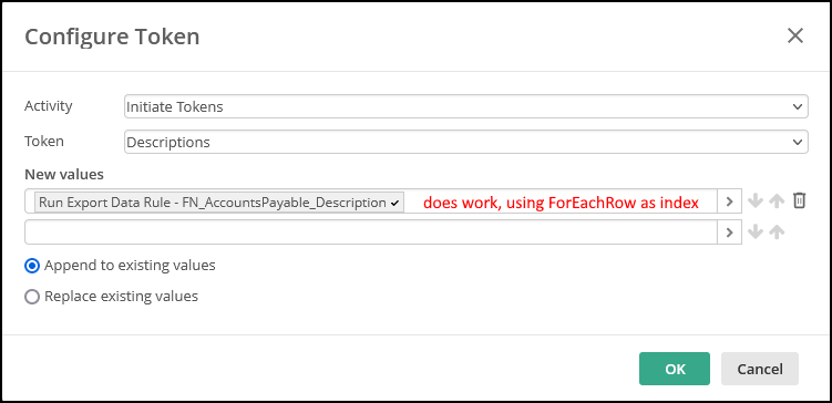 Thanks Kevin. I think I ran into an issue with the For Each Row Activity. I was not able to assign the resulting values to a multi-valued token in the For Each Row using the current values. It loops the correct number of times (7), but no values get assigned to the token. Perhaps a bug or I'm not using it correctly?