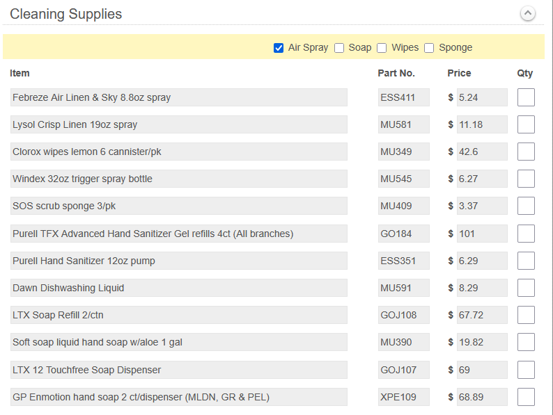 I have a set of checkboxes, then a Table with 4 columns and "X" number of rows.