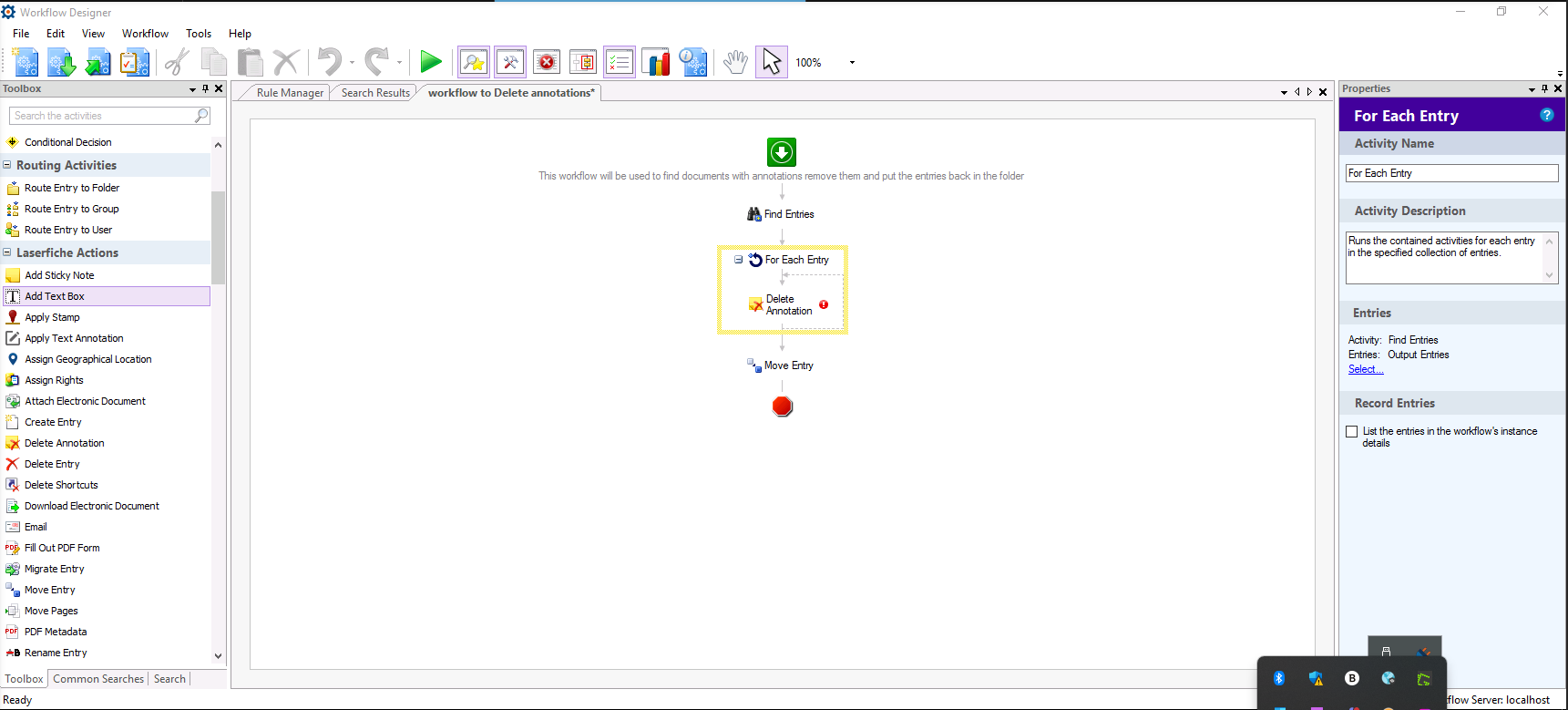 On a side note, if your Move Entry is meant to move each document rather than the whole folder, make sure it is inside the loop and also targeting the Current Entry.