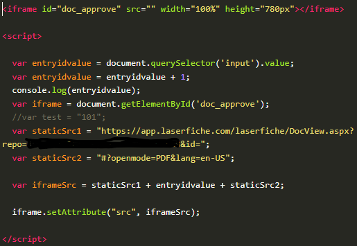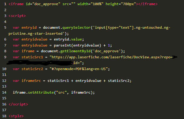 I am having trouble retrieving the value from a Single Line field to store in a variable inside my custom HTML element.