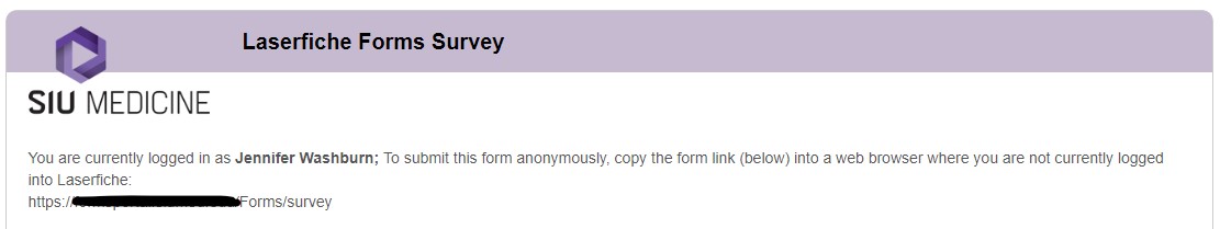 This wasn't scoped too well (in my opinion, at least) as it was never brought up that anonymous internal surveys or feedback would be developed using Laserfiche. As they've gotten comfortable with the idea of using LF and understanding the restrictions, it'd be a streamline process if the HR portal would allow for anonymous submissions. We currently have one major process set up in that portal which uses an SQL query to delete all data out of a survey response. This works really well, although is managed externally by our reseller.