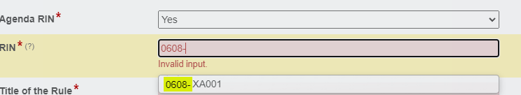 When we select Agenda RIN = "yes" we need to hide the auto fill that we got from above step but its shows that selection. How we will clear that auto fill ?